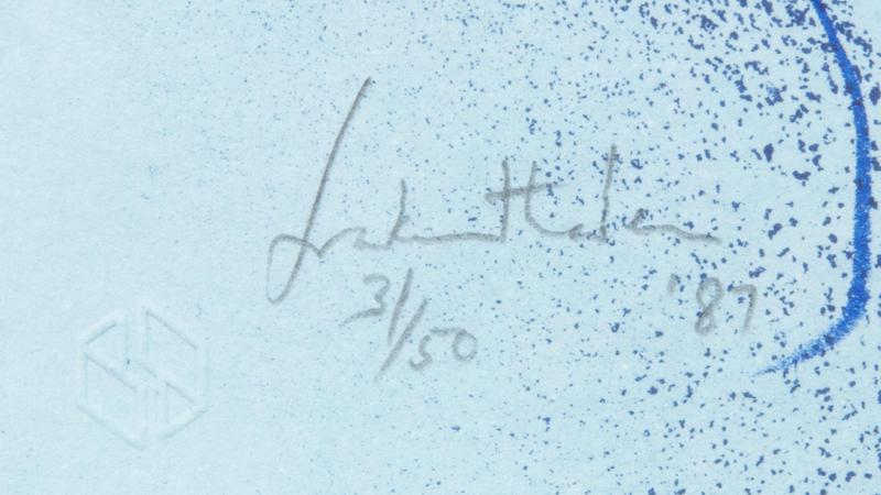 , 1987color sugar-lift etching, soft-ground etching, aquatint, etching and lithograph on light blue hand made paper