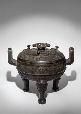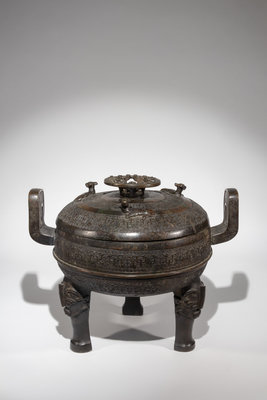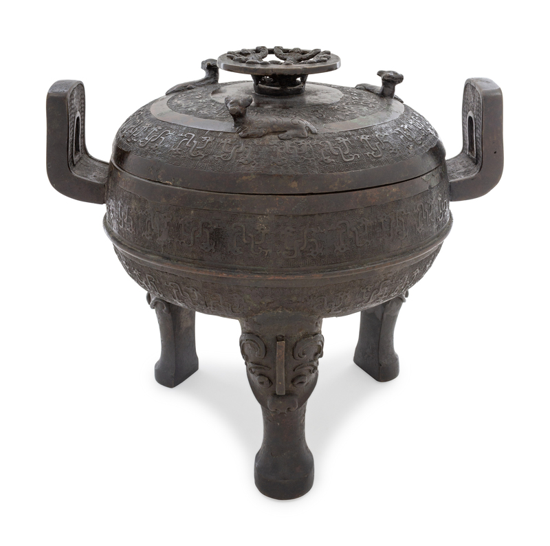 A Rare Archaistic Bronze Ritual Tripod Vessel and Cover, Ding