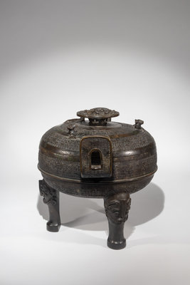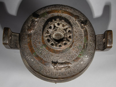 The Song’s insatiable demand for ancient bronzes led to a large market for ‘imitation’ pieces. Skilled craftsmen were able to create quality replicas of these bronze wares, either based on newly-published classical examples, or with modern variations that catered to Song tastes. The present vessel falls under the former category with its similarities to Warring States prototypes from the 5th to 3rd century BC. With its fine casting, exceptional details and interior inscription, it is a wonderful Song Dynasty homage to the antiquarian past.