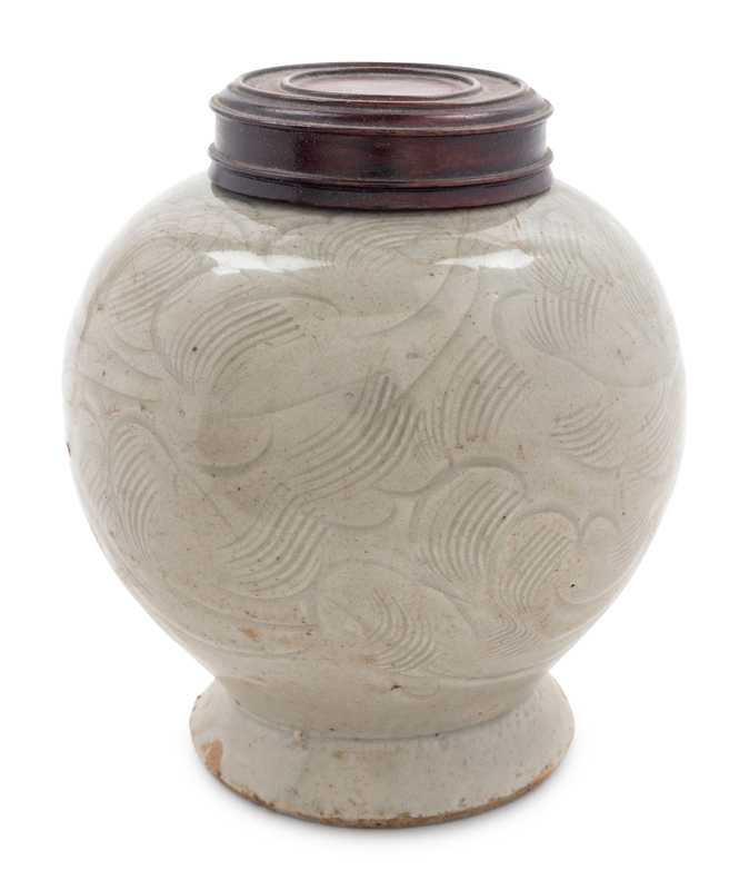 A Celadon Glazed Carved 'Floral' Porcelain Jar