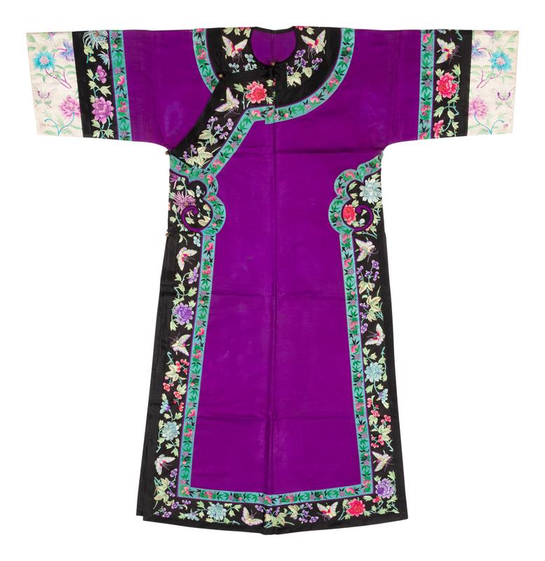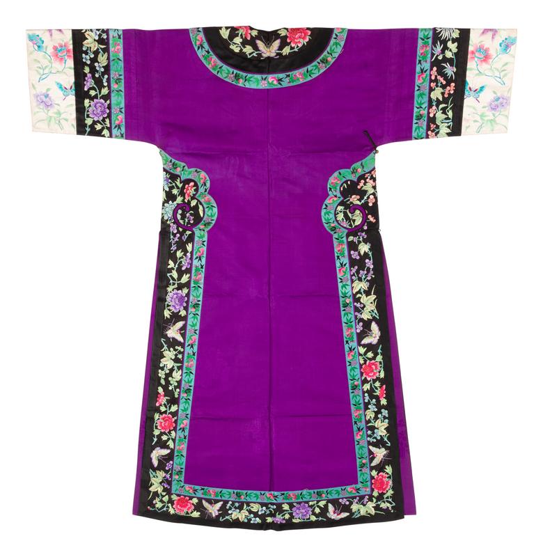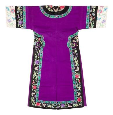 A Purple Ground Embroidered Silk Manchu Lady's Informal Robe