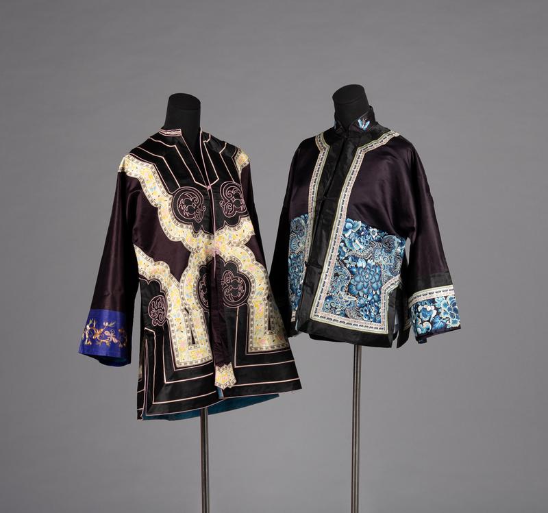 Two Black Ground Embroidered Silk Lady's Coats