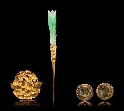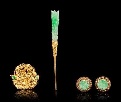 Four Jadeite Inset Gold Jewelry