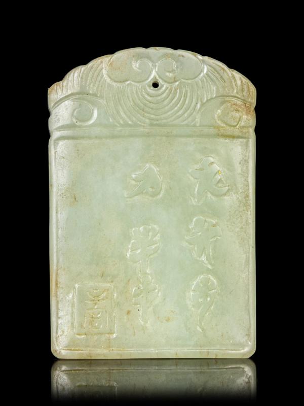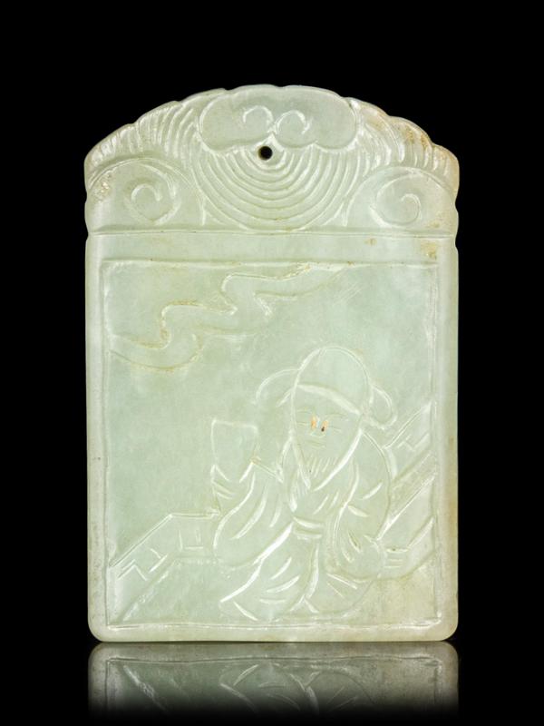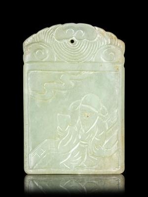 of rounded rectangular form, carved in low relief of a scholar figure in front side.