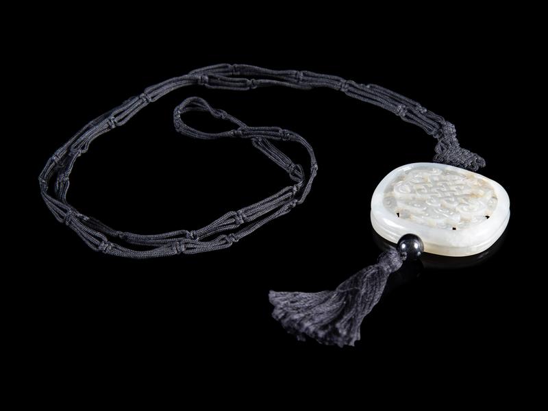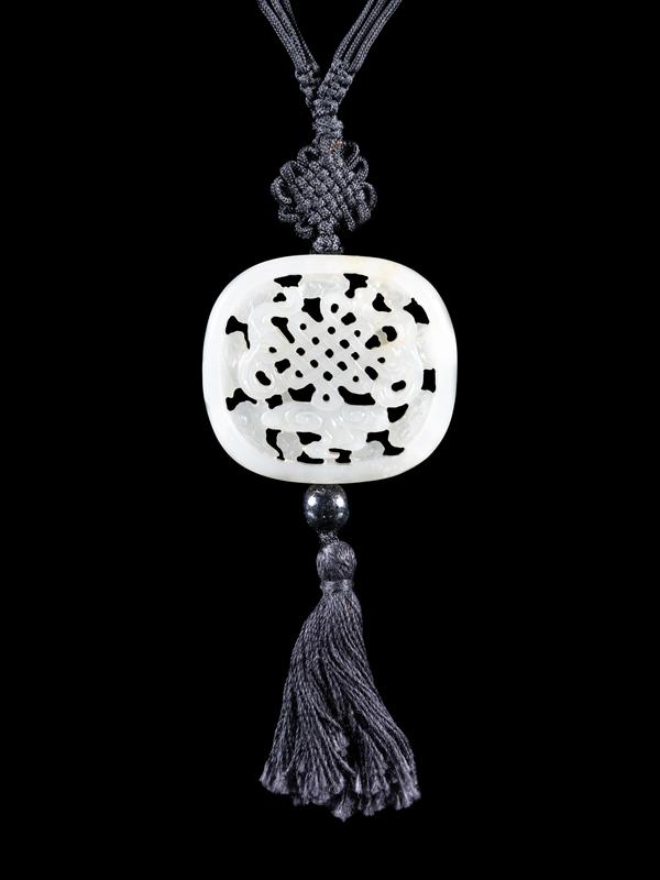 reticulated with panchang decorations, the stone with faint icy and russet inclusions.