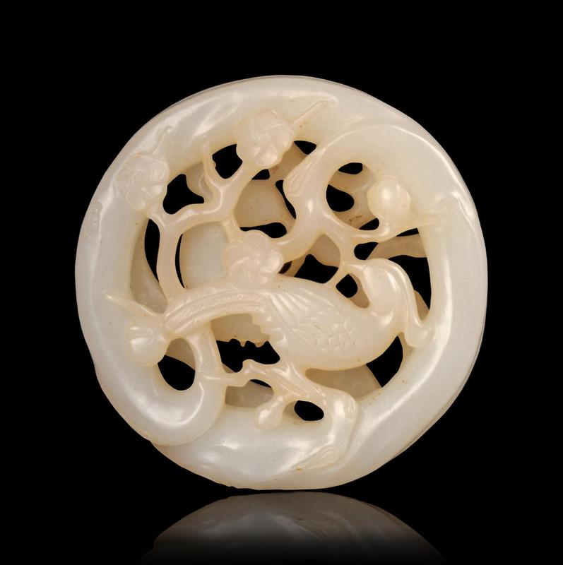清晚期 白玉鏤雕喜鵲登梅圓佩