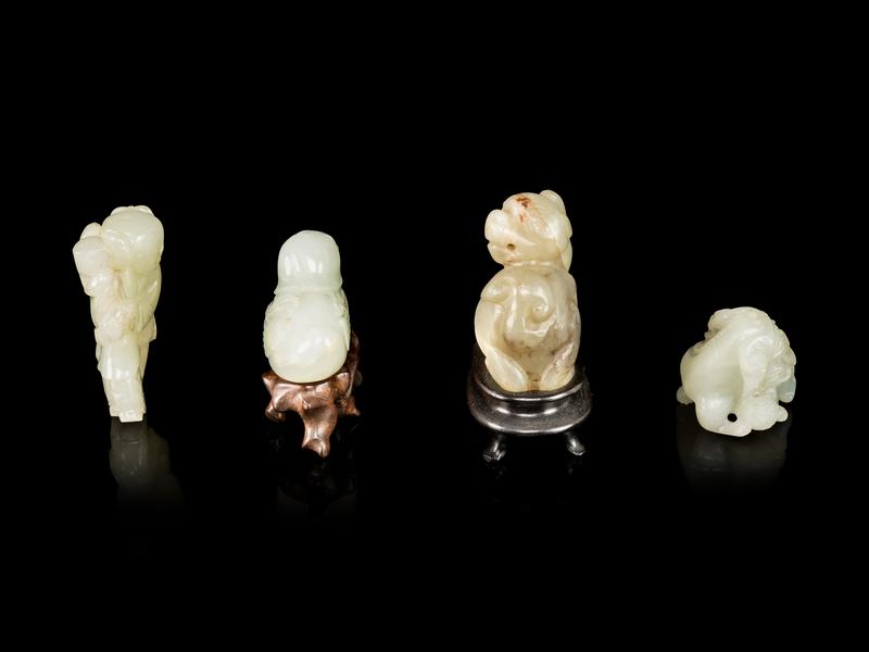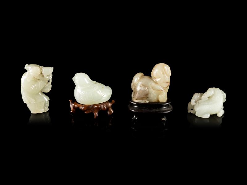 the first and the second each depicting a recumbent beast, the third a figure of a boy holding lotus spray, the fourth a recumbent duck.