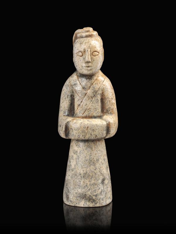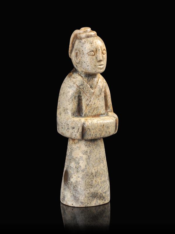 A Calcified Jade Figure of a Male Attendant