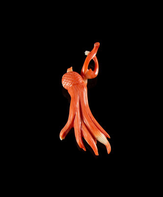 民國/近代 紅珊瑚雕鮮花仕女擺件