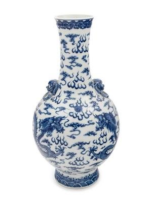 A Large Blue and White Porcelain 'Dragon' Bottle Vase