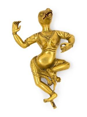 A Sino-Tibetan Gilt Bronze Figure of an Animal-Headed Deity