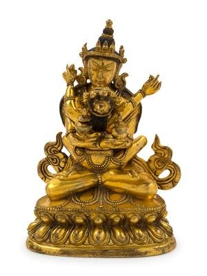 A Sino-Tibetan Gilt Bronze Figure of Vajradhara