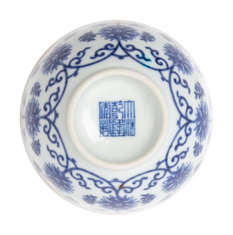 清乾隆 青花礬紅纏枝蓮托八吉祥紋碗