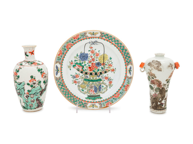 Three Famille Verte Porcelain Articles