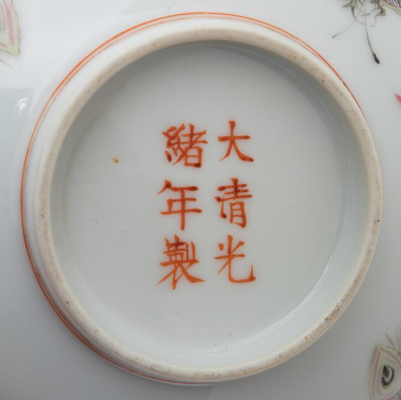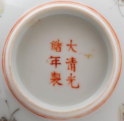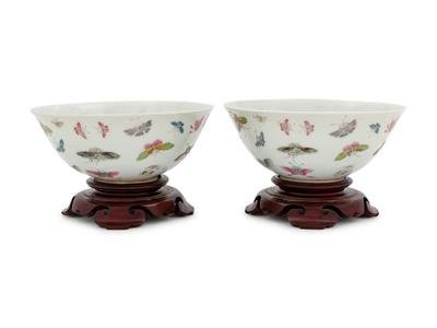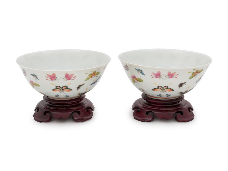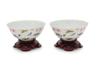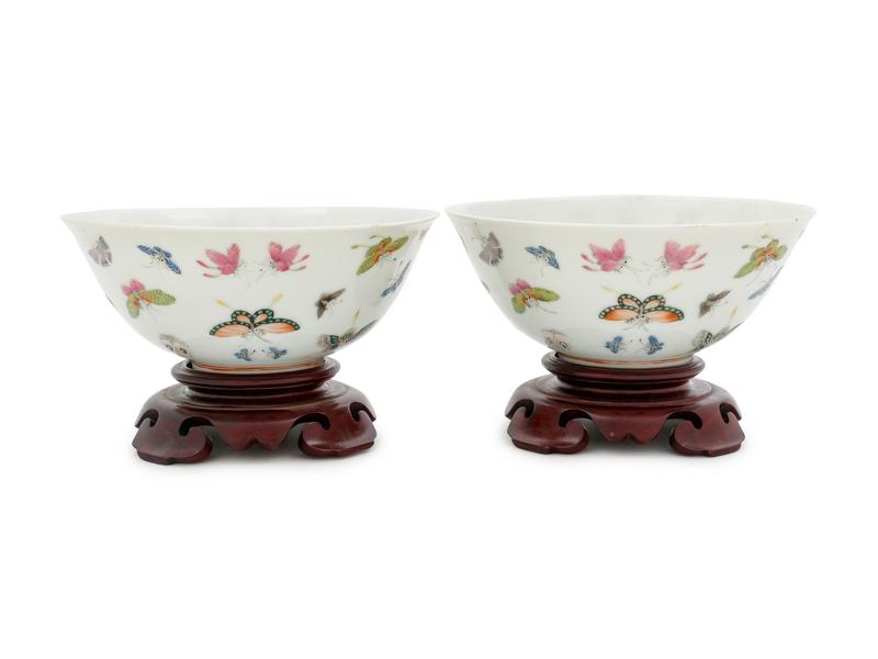 each has deep rounded side rising from a straight foot to an everted rim, painted to the exterior with fluttering butterflies, the base with a six-character mark in iron-red, Daqing Guangxu nian zhi.