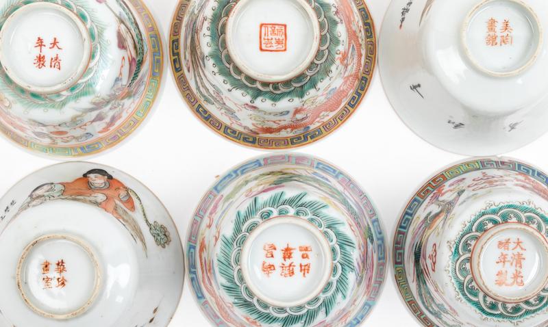 Sixteen Famille Rose Porcelain Covered Tea Bowls
