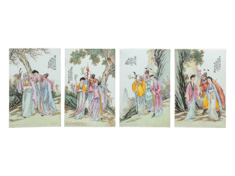 A Set of Four Famille Rose Porcelain 'Figural' Plaques