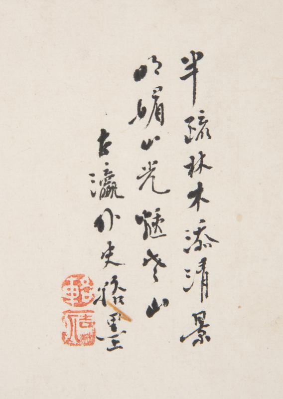 款識:半疏林木添清景,▯媚山光▯▯山。東瀛外史▯墨。