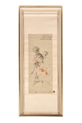 ink and color on paper, handscroll, framed
