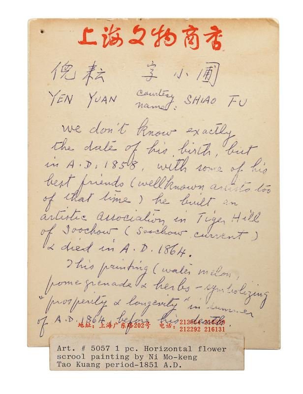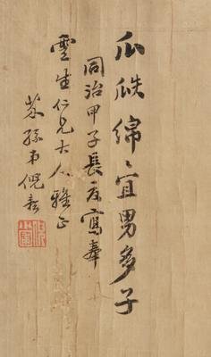 款識:同治甲子(1864)長交寫,奉運盛仁兄大人雅正。芥孫弟倪耘。