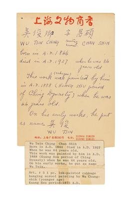 signed Changshuo, Wu Jun, dated 1888, two artist’s seals.