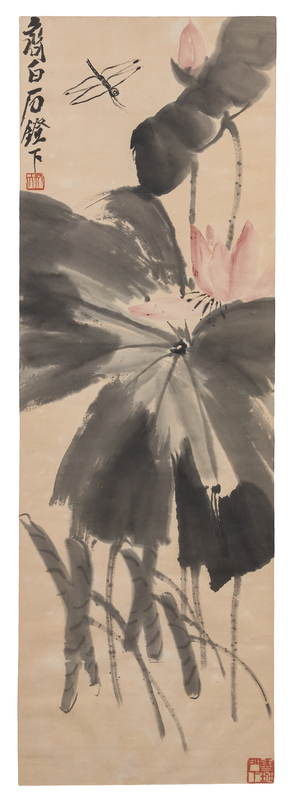 signed Qi Baishi deng xia, two artist's seals, Qi Da and Lu Ban men xia