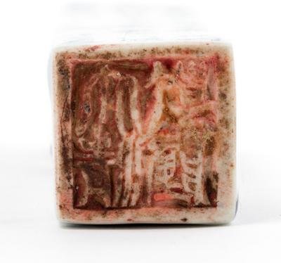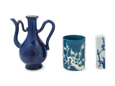comprising one wine pot, one powder blue brush pot, and one blue and white seal.