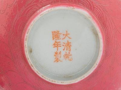 each has U-shaped sides rising from a short straight foot, incised with dragon motifs.