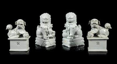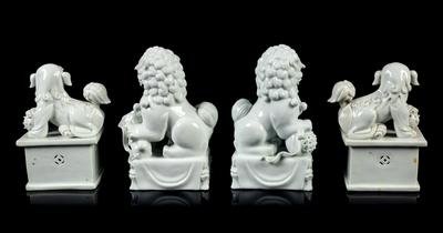 Two Pairs of Chinese Blanc-de-Chine Porcelain Figures of Fu Lions