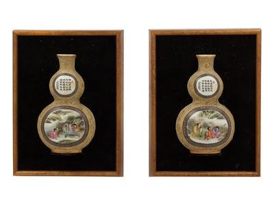 A Pair of Chinese Famille Rose Porcelain Gourd-Form Wall Vases