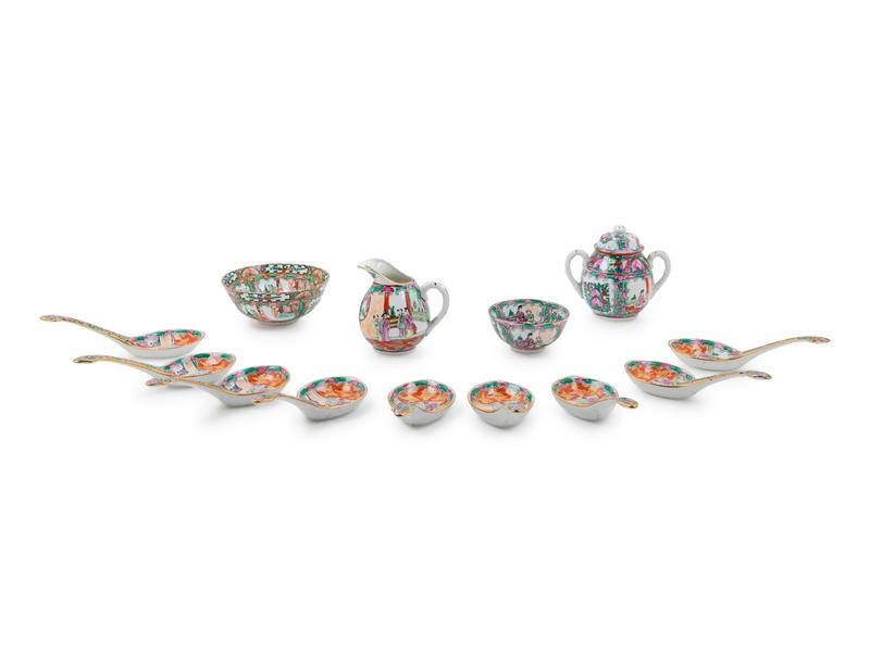 Thirteen Chinese Export Rose Medallion Porcelain Wares