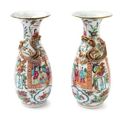 A Pair of Chinese Export Canton Famille Rose Porcelain Vases