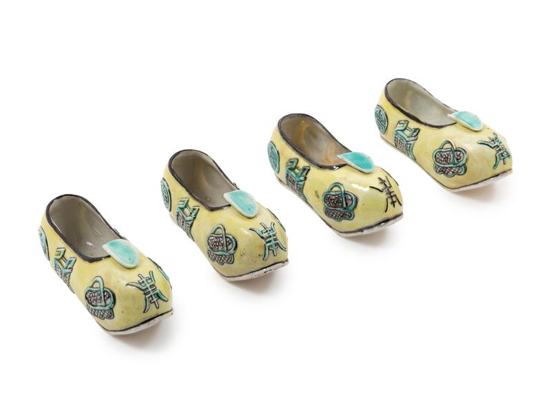 Four Chinese Famille Verte Porcelain Models of Shoes