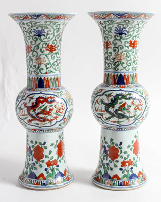A Pair of Wucai Porcelain Gu Vases