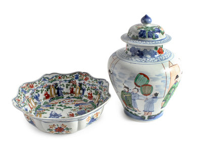 Two Chinese Wucai Porcelain Articles