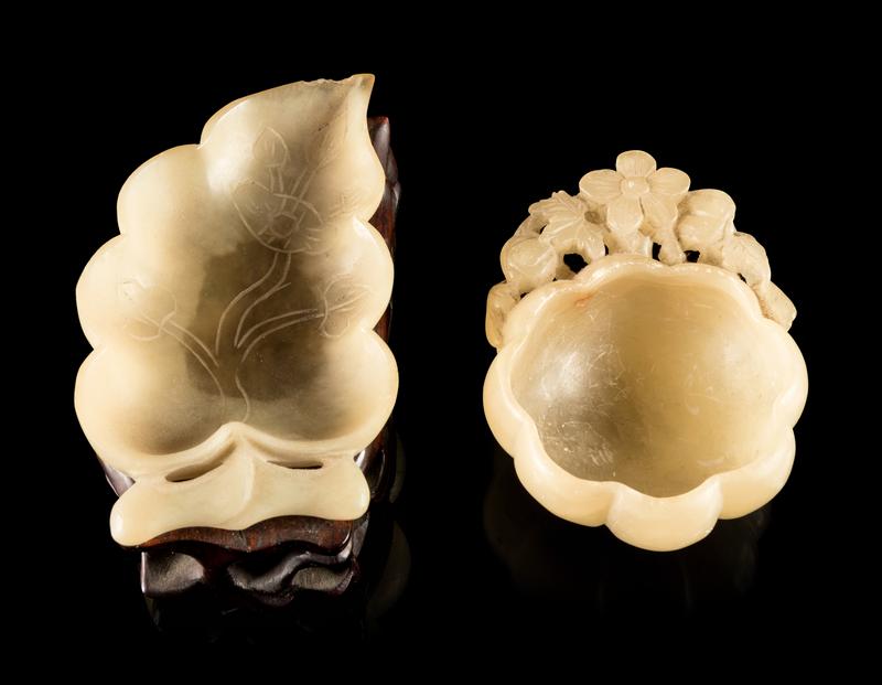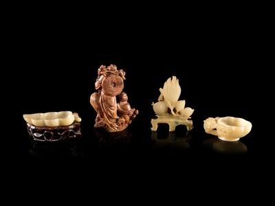 comprising two brushwashers, a carved model of fruit, and a figural group.