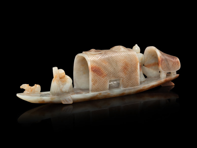 carved in the form of a flat-bottomed boat covered with an arched woven roof.