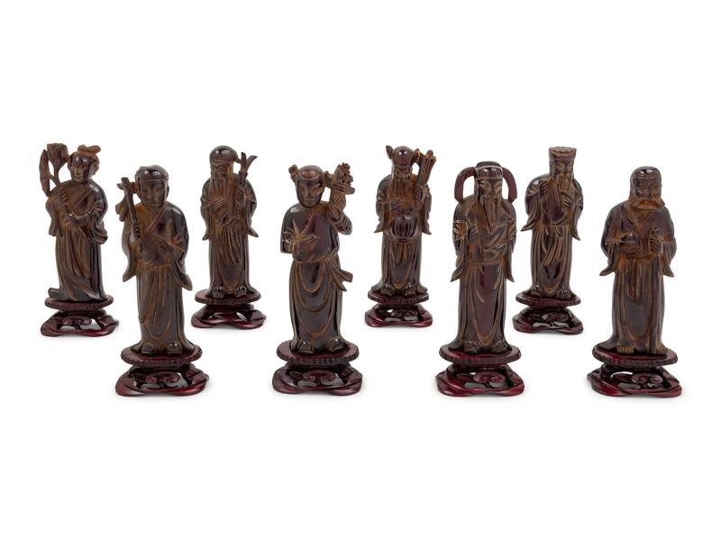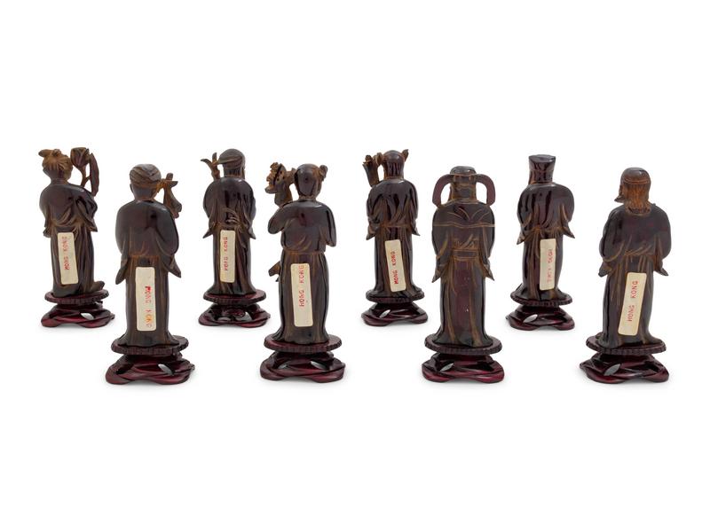 Eight Chinese Black Hardstone Figures of Immortals