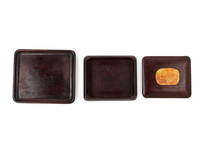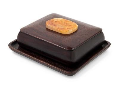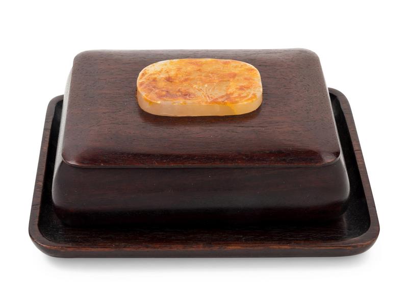 A Chinese Jade Inset Hardwood Box and Tray