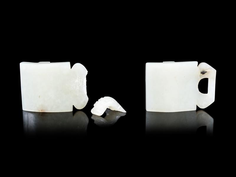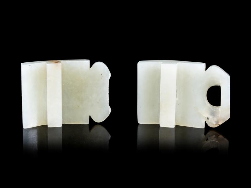 A Chinese Pale Celadon Jade Two-Part Belt Buckle