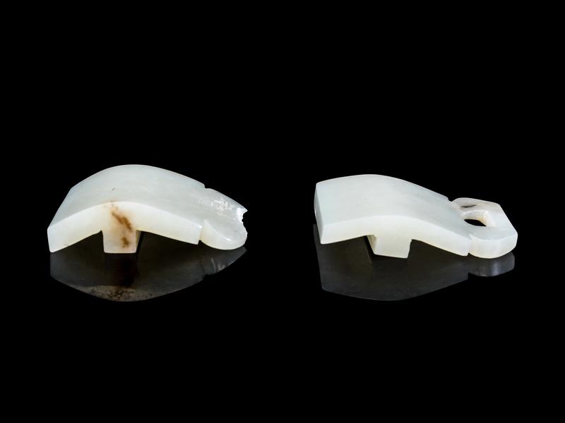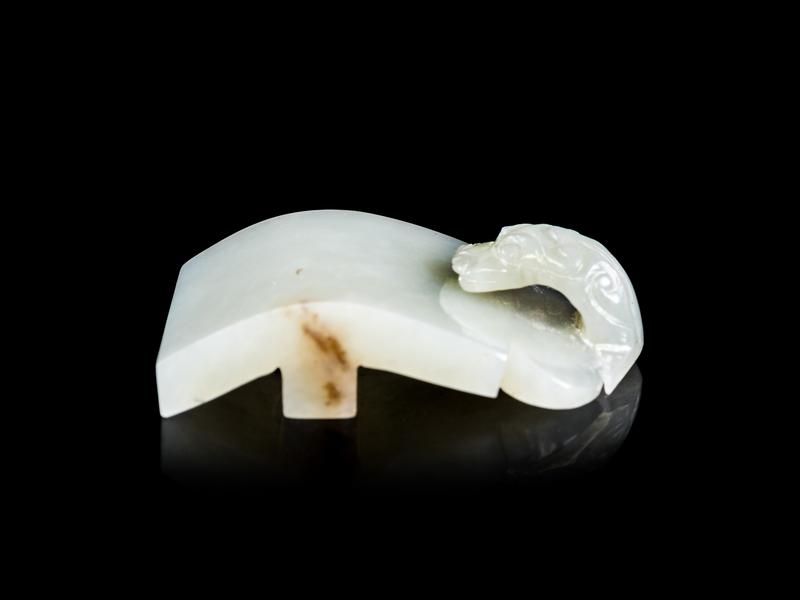 the pale stone with russet inclusions, the chilong head forming a hook broken and retained.