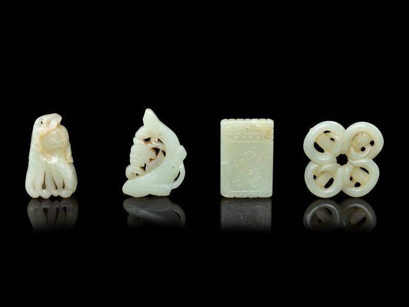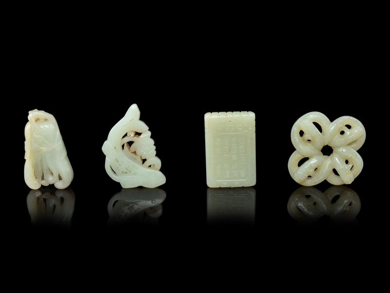 the first in the form of a Buddha's hand citron, the second a fish, the third a carved plaque, the last a sinuous snake in the form of an endless knot.