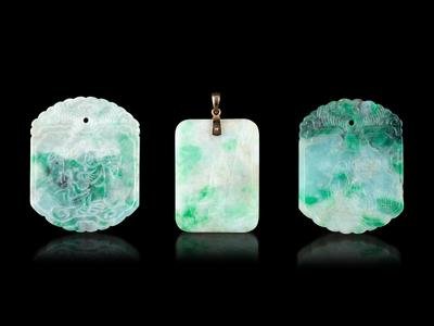 comprising a rectangular example with a gold metal mount, and two pierced and carved examples with figural scenes and scrolling borders.