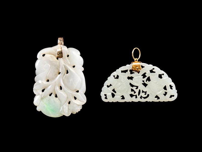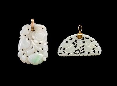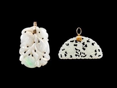 Two Chinese Reticulated Jade and Jadeite Pendants