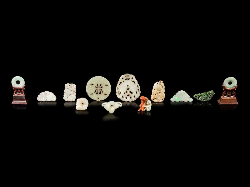 Twelve Chinese Jade and Jadeite Pendants
