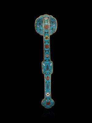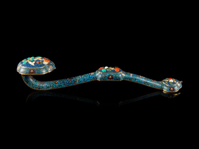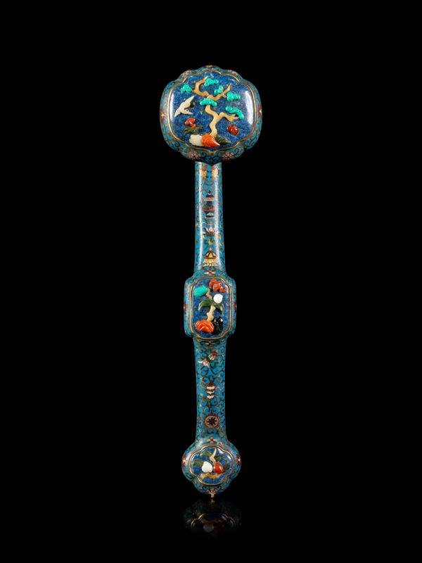 A Chinese Hardstone Inset Cloisonné Enamel Ruyi Scepter