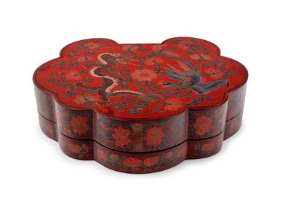 A Chinese Polychrome and Gilt Lacquered Box and Cover