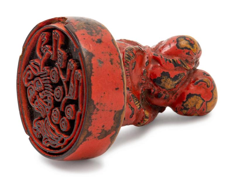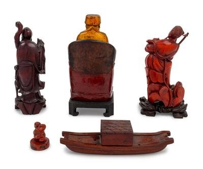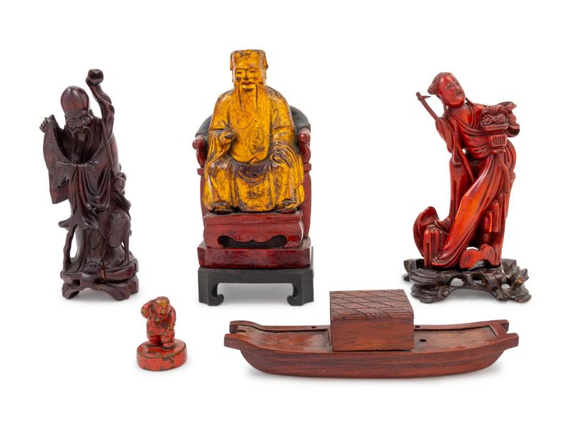 comprising one figure of an immortal, one female immortal, one lion-form seal, one model of a boat and one figure of Shoulao.