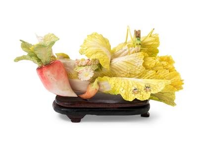 A Chinese Painted Bone Carving of a Cabbage