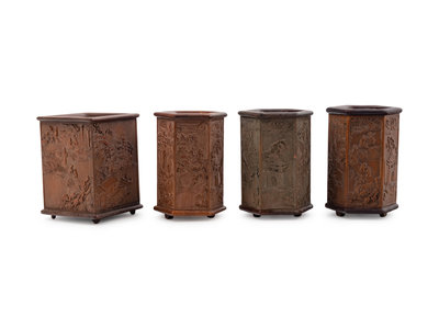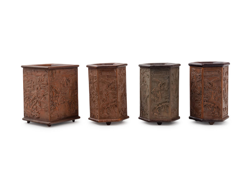 Four Chinese Carved Hardwood Brush Pots, Bitong